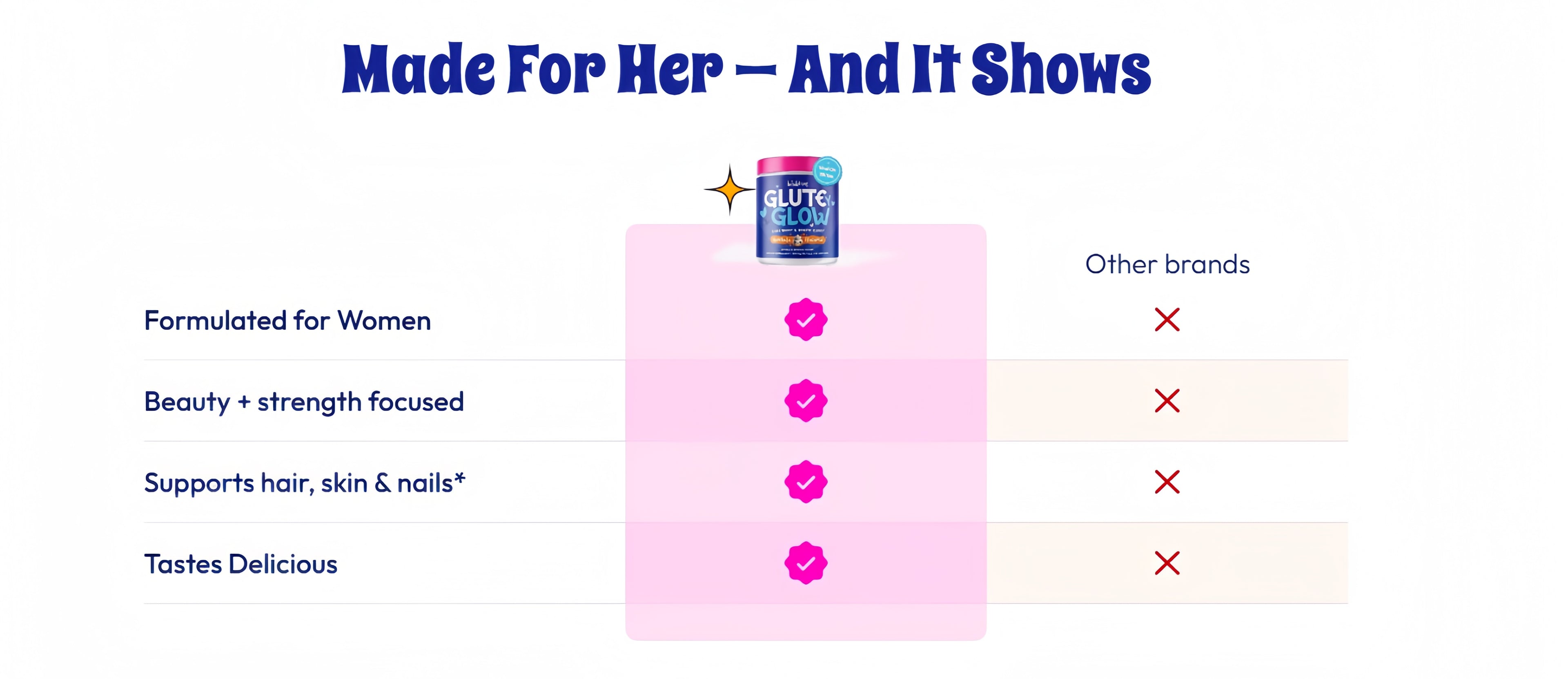Glute y Glow is not your average supplement. It’s a 2-in-1 beauty + booty formula designed specifically for women. While most supplements focus only on fitness or only on skin/hair, we combined both into one daily scoop.